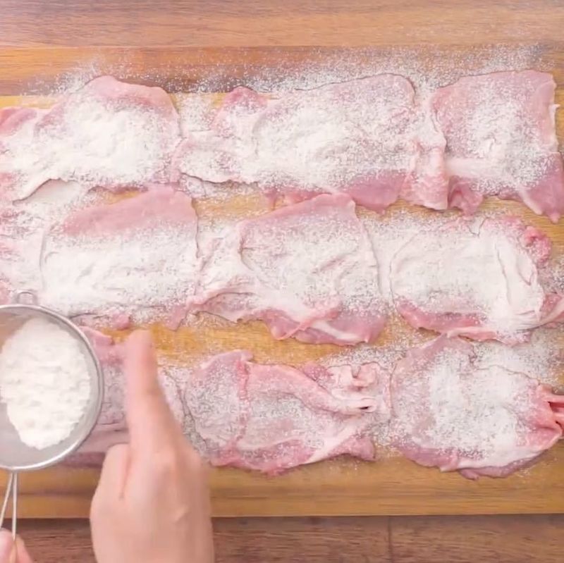 1.  豚こま切れ肉に片栗粉をまぶす。