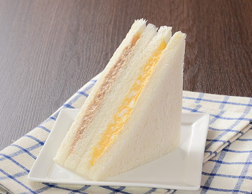 たまごのコクを感じるたまごサラダとジューシーなツナサラダをサンドしました。