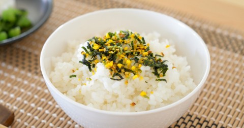 「ふりかけ」のミニパックで白ゴハン 塩分0.5㌘